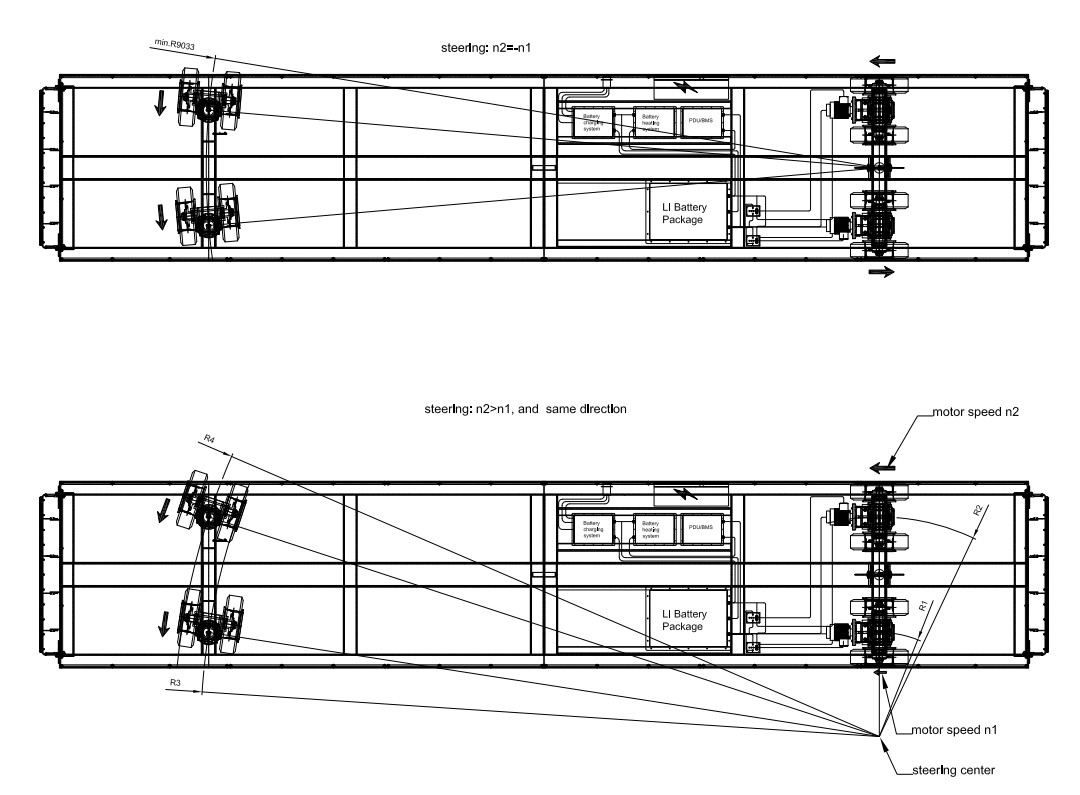 Телега на радиоуправлении 30 тонн На тяговой батарее, управление с пульта. Передние колеса поворотные, задние тяговые. По техническому заданию заказчика могут быть внесены изменения, как по